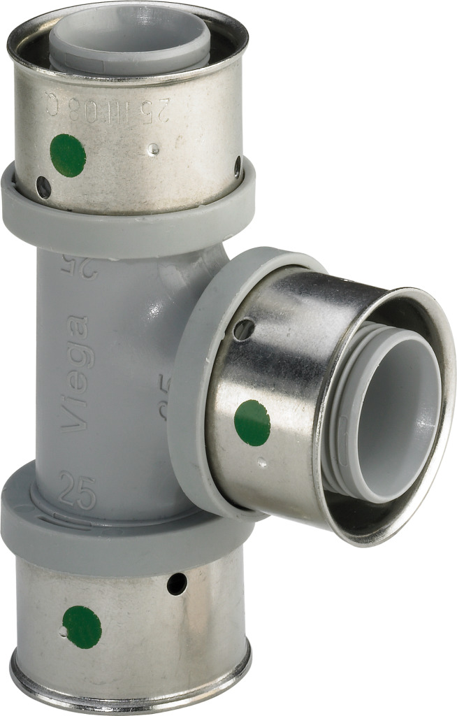 Viega Smartpress/Pexfit Pro alupex T-komad, 25-16-25 mm. Karakteristike: • Promjer: 25-16-25 mm • Press priključci • Sa tehničkim rješenjem SC‑Contur slučajno nesprešani spojevi pri punjenju instalacije postaju vidljivo propusni • Za Smartpress i Pexfit Pro sustave • Materijal: PPSU (polifenolsulfon) • Higijenski • Iznimno izdržljiv • Osigurava krajnju dugotrajnost instalacije
