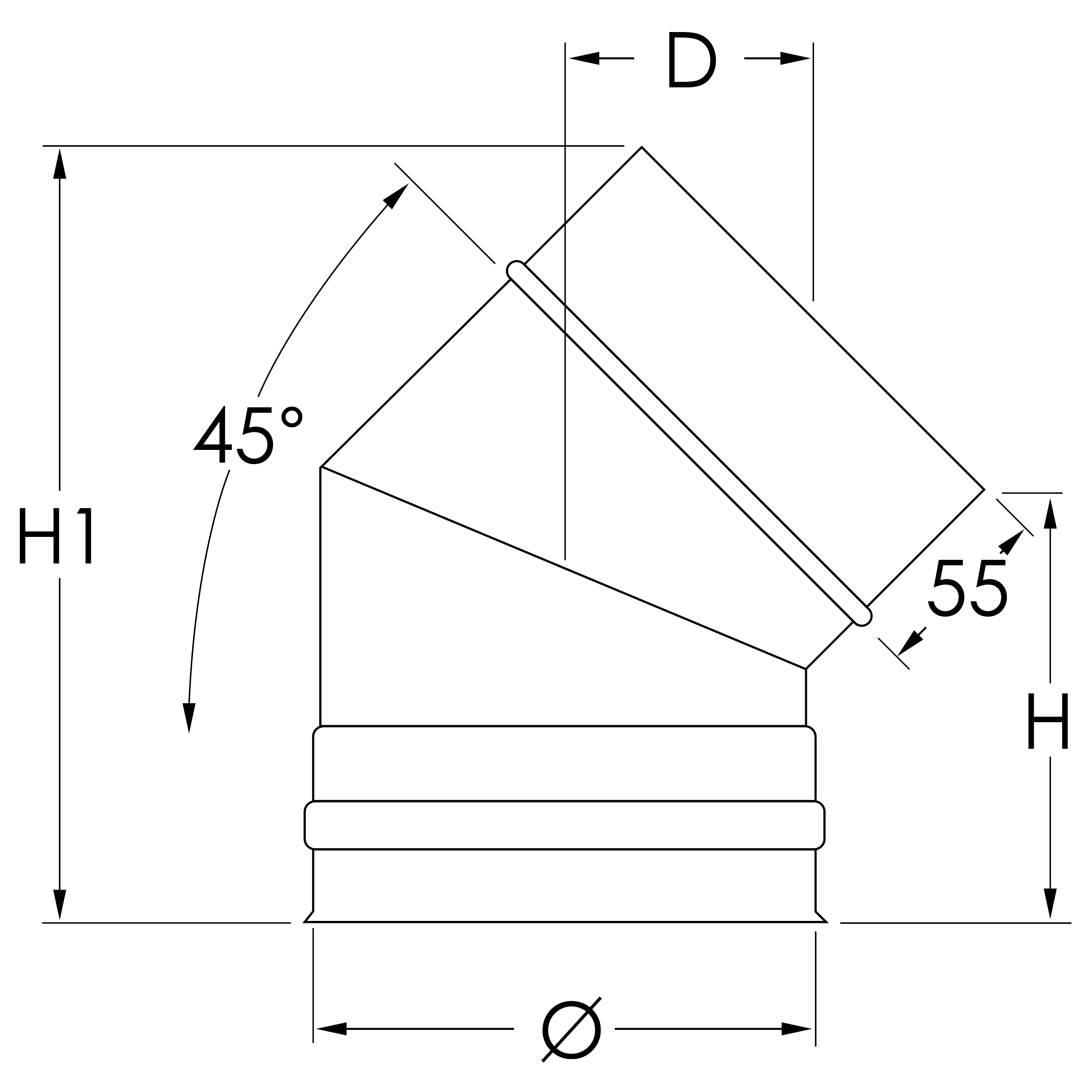 G667528 | Dimovod Terma Inox koljeno izolirano 200/250, 45°, s obujmicom