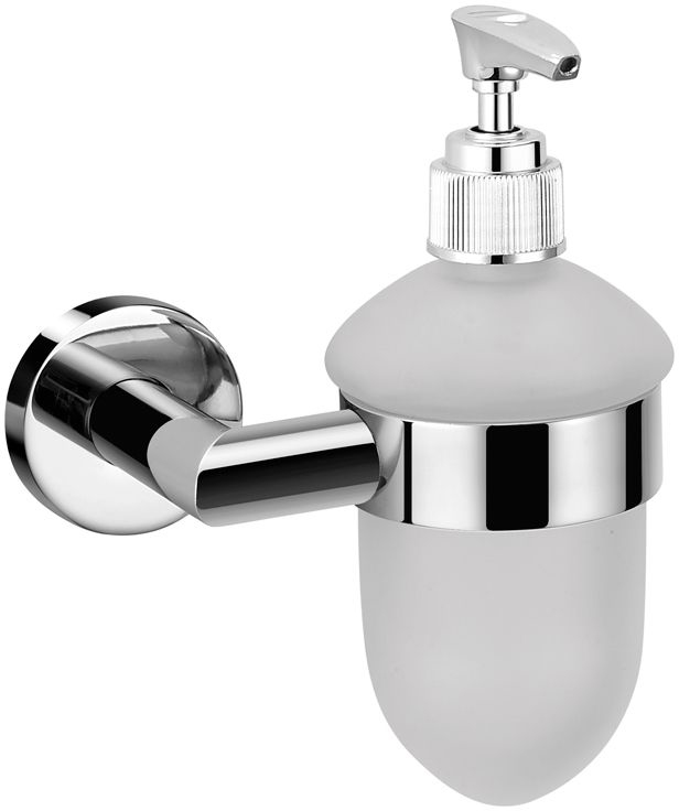 Voxort stakleni dozator tekućeg sapuna sa kromiranim zidnim držačem.