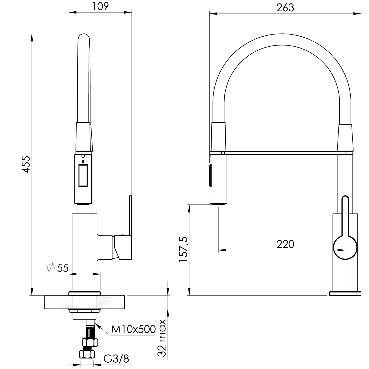 • Priključna crijeva: 2x3/8", duljine 45 cm
