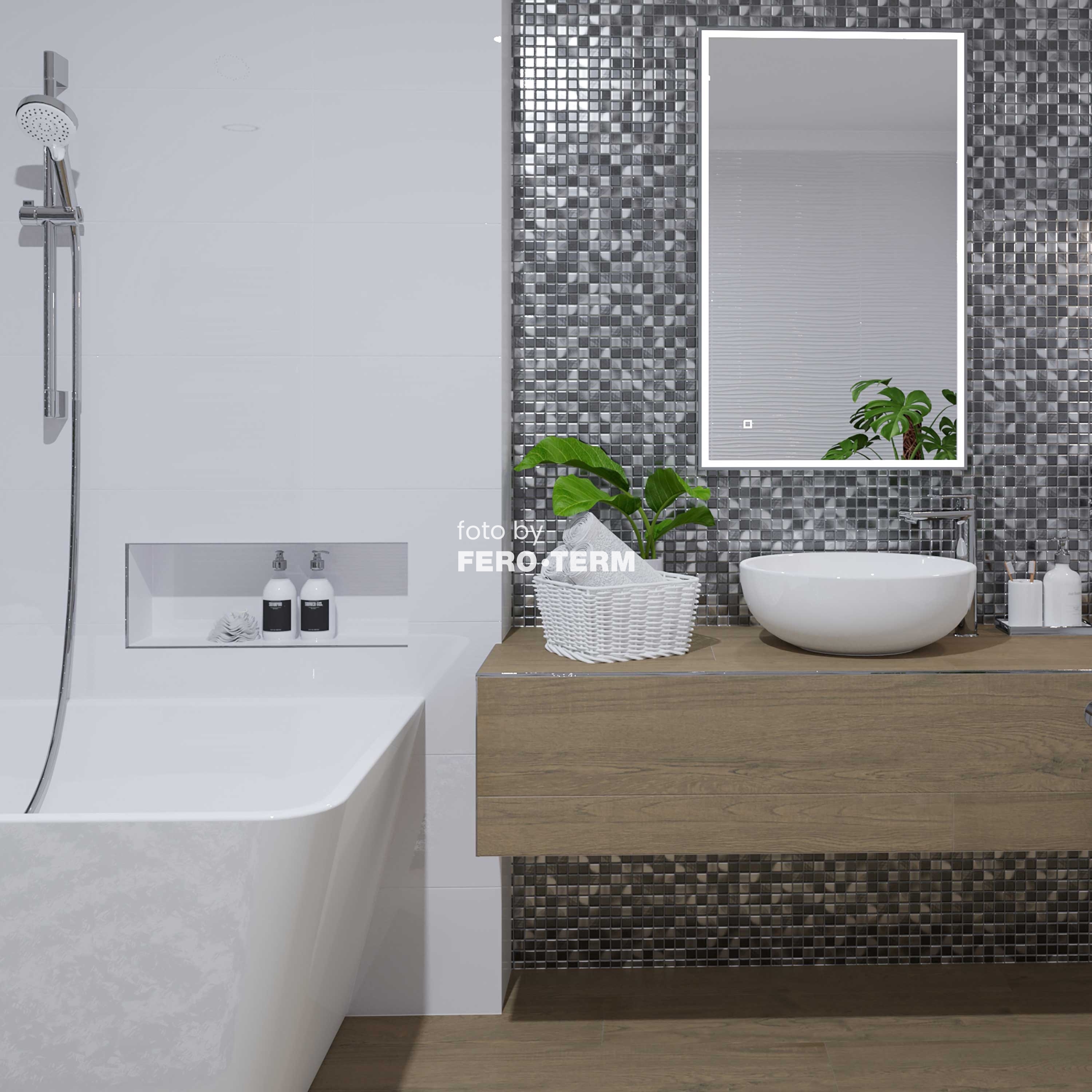May Ceramics Crystal Mosaic Metal je mozaik na mrežici dimenzija 30x30 cm, u imitaciji metala, mat završne obrade i blage varijacije tonova. Suvremenog je dizajna, vrlo je dekorativan i lako se kombinira sa podnim i zidnim pločicama u svim nijansama. Namijenjen je za oblaganje svih zidnih površina u interijeru i eksterijeru.