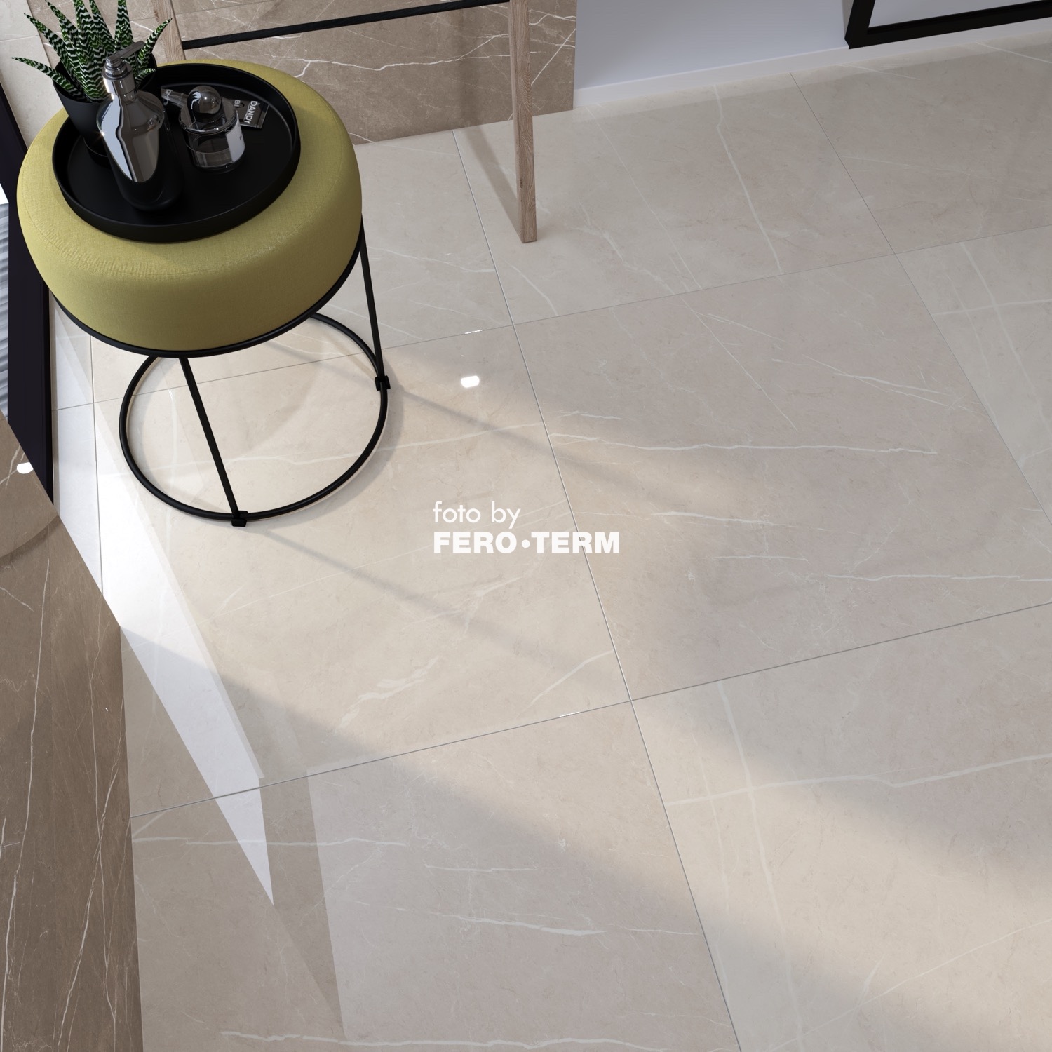 May Ceramics Eternal Cream je podna pločica dimenzije 60x60 cm u imitaciji mramora, mat glazure i jake varijacije tonova. Jednostavnog i suvremenog dizajna koji se izvrsno uklapa u moderne, ali i klasične ambijente. Rubovi pločice su ravno rezani (retificirani) što omogućuje polaganje sa minimalnom fugom. May Ceramics Eternal Cream pločice su idealne za postavljanje u interijere kao što su dnevni boravak, kuhinja i kupaonica.