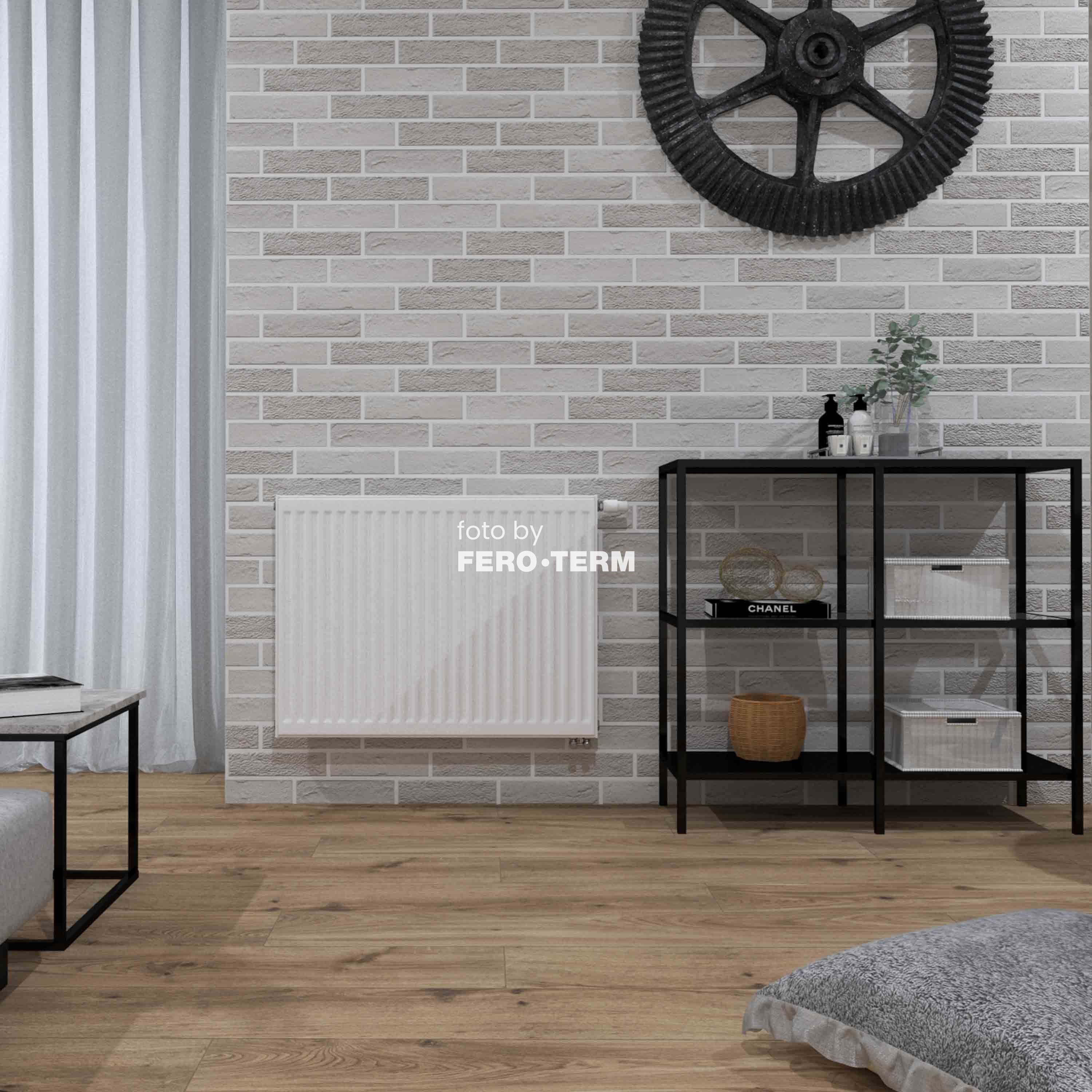 Purmo Ventil 21 radijator opremljen je s integriranom ventilskom garniturom za dvocijevni sustav grijanja. Time obuhvaća, osim mogućnosti četverostranog priključaka G1/2" (ISO 228), elegantan priključak odozdo (2 priključaka G1/2" 50mm). Sa svojim profiliranjem u razmaku žlijebova 33 mm, te bočnim oblogama i ukrasnom rešetkom postojećeg kompaktnog kompleta. Ventilski radijator je klasični univerzalni radijator. Ogrjevna površina koja provodi vodu izrađuje se iz hladnovaljanog čeličnog lima FePO 1 prema EN 10130 i EN 10131, nazivne debljine 1,25 mm, konvekcijski limovi su iz istog materijala, ali nazivne debljine 0,5 mm. Deformacije u razmacima izbočenja od 33 mm izvode se na specijalnim prešama. Pri tome se kod kontrolirane deformacije postiže najveća moguća površina i učinak grijanja. Daljnje povećanje učinka postiže se naglašenim oblikom konvektora i toplinsko-tehnički povoljnim prijelazima na vertikalnom vodenom kanalu. Radi toga su kompaktni radijatori posebno dobro primjenjivi za nisko temperaturna područja. Oblikovanje horizontalnih i vertikalnih vodenih kanala, posebno u području zajedničkih prijelaza, doprinosi odlučnoj raspodjeli vode i skoro neznatnom padu tlaka. Kompaktni radijatori se alkoholno odmašćuju i željezno fosfatiziraju. Nadovezujuće KTL temeljno lakiranje uranjanjem osigurava optimalnu zaštitu radijatora od korozije. Predpostupak i temeljno lakiranje omogućuje nanošenje visoko zahtjevnog pokrovnoga sloja iz praha epoksidne smole. Minimalni zahtjev prema DIN 55900, dio I+II visoko su premašeni. Svi postupci nanošenja boje provode se sa trenutnom poznatim sustavima zaštiti okoline. Pečenje lakova izvodi se kod temperature od 200*C. Sve isparive tvari se kod ovih temperatura lako povlače. Kasnije, u pogonu radijator ne pridaje nikakve štetne tvari okolišu. Standardna boja za sve kompaktne radijatore je RAL9016 (bijela). Opis isporuke ; Radijator završno montiran s ukrasnom rešetkom i bočnim oblogama (tip 10 bez ukrasne rešetke i bočnih obloga), tipovi 11 do 33sa kompletima za brzu montažu (do dužine 1600 mm dvostruki komplet, do dužine 1800 mm trostruki komplet(), tip 10 s FZ držačem kompletno s vijcima i tiplama. Samobrtvljujući slijepi čepovi i odzračnici sadržani su u pakiranju. Nominalna snaga radijatora po EN44 290/70/20 je 1353 Watti. Da biste sami izračunali koja vam je snaga potrebna za pojedinu prostoriju, koristite ovu formulu; Širina prostorije x dužina prostorije x visina prostorije x 65 = snaga u W za vašu prostoriju.
