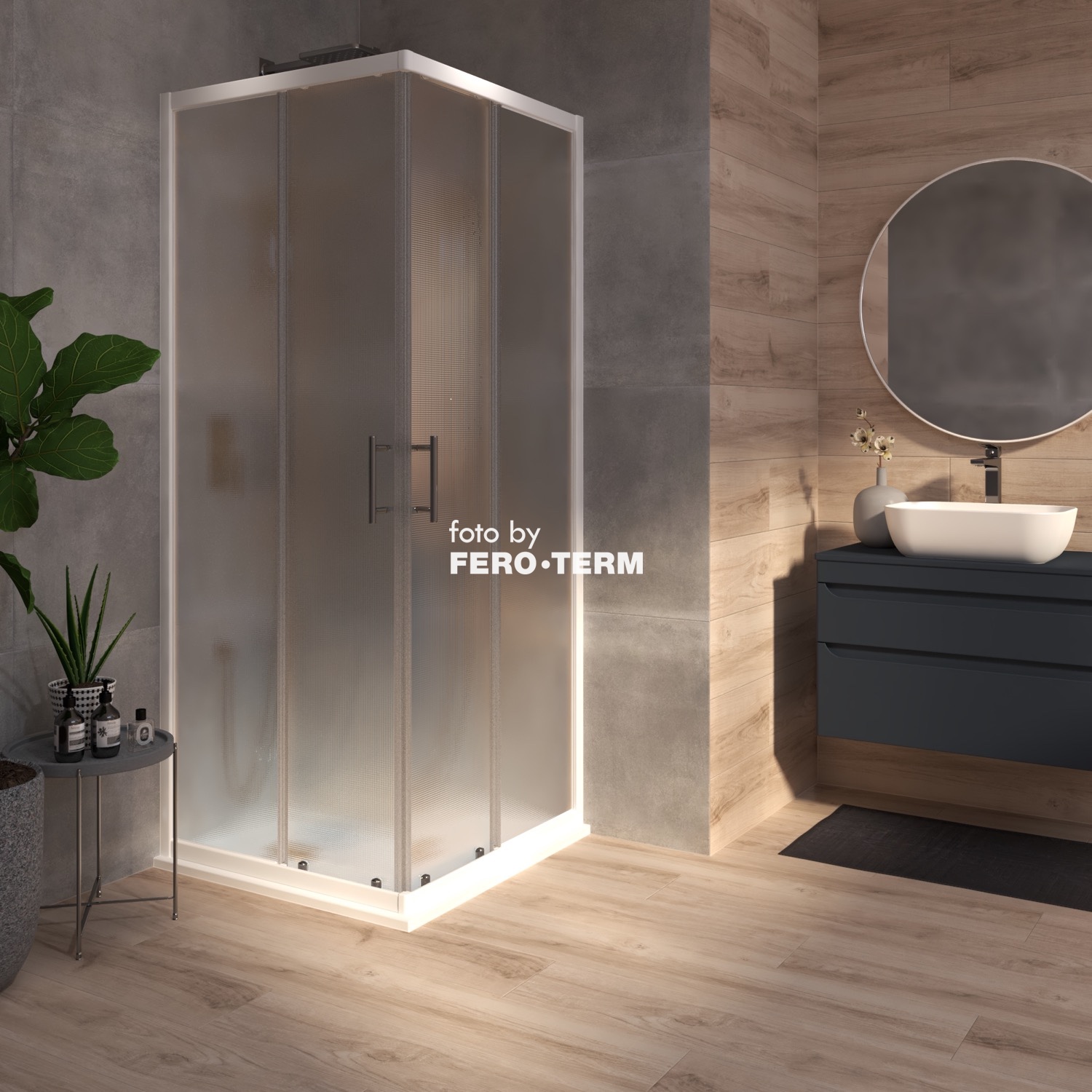 N11767 | Tuš kabina kvadratna Voxort Blue, 80, ornament/bijela