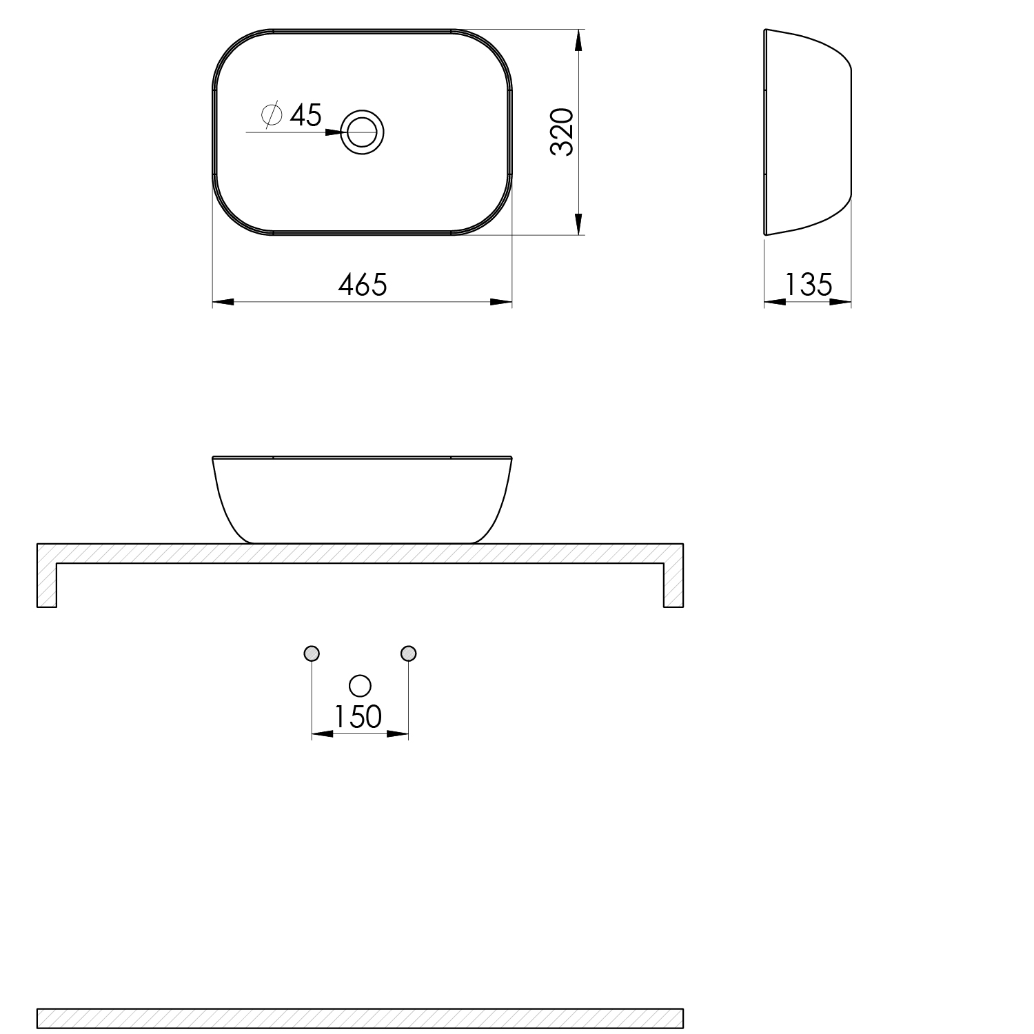Ploča za nadgradni umivaonik Concepto+ Stone Glass A, 61x47x1,8 cm